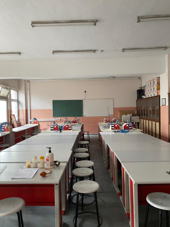 Derslerimizde kimya laboratuvarımızı kullanmaya başladık. Kimya derslerimizin bir kısmını laboatuvarda işliyoruz.